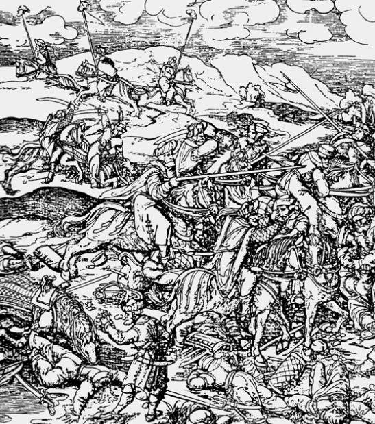 The cavalry was divided into three groups and infantry were deployed between them. Jakub pasha sent several hundred akinjis to shoot arrows at Derenčin’s army which brought unrest and nervousness among the troops. Also, about 1,000 Ottoman cavalry passed unnoticed around the Croatian forces and remained hidden in the nearby forrest. Provoked by the constant arrows of the akinjis, Derenčin ordered the army to move towards the majority of the Turkish army. He was convinced that the Turks could not oppose his heavy cavalry and also the Croatian army was bigger in numbers. Immediately the Turks began to move slowly towards the Croats. At that moment, one of Jakub pasha’s assistants, Ismail beg launched a sudden assault with his detachment and crashed with all his strength into the ranks of the infantry. A fierce battle ensued. Also Derenčin’s army was still being attacked by arrows of akinjis maneuvering around them. After a while it seemed that the infantry was winning the battle and the Turks were retreating. But it was a fake retreat. Croatian infantry rushed after them. The commanders shouted in vain to stop, and in the end, in order to maintain some kind of cohesion, they were forced to follow them. There was a severe clash between the majority of the two armies. At that moment, Mehmed beg’s cavalry flew out of the woods where they were hidden and roared and slammed into the Croatian army from behind. The situation was chaotic. The infantry began to slowly fade in battle, and slow Croatian cavalry found it hard to manouver in a small area. The Turks surrounded them on three sides, and on the right there was the river Krbava which was blocking the retreat. Some dukes fell during the very first attacks of the akinjis and when Ivan Frankopan of Cetin fell the Croatian army desintegrated. After a few hours the defeat was complete.